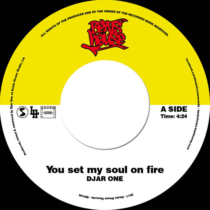 "Fresh from the success of his Andy Cooper-featuring b-boy 45 in September, Djar One ensures those at the get down remain getting down with some sweet edit action from new seven inch You Set My Soul On Fire. Could that be an edit of a certain Chi-Lites number famously sampled by Beyonce? It could! And that brass everyone fell crazy in love with then is in full effect again along with an extra layer of heavy drum break. Probably best if there’s something properly stomping on the flip in that case too, yeah? Perhaps a mod-style soul jazz groover with big drums? Maybe call it Movin Now or something? That should do it. Don’t hang around when this drops though – it’s a limited 300 pressing run."